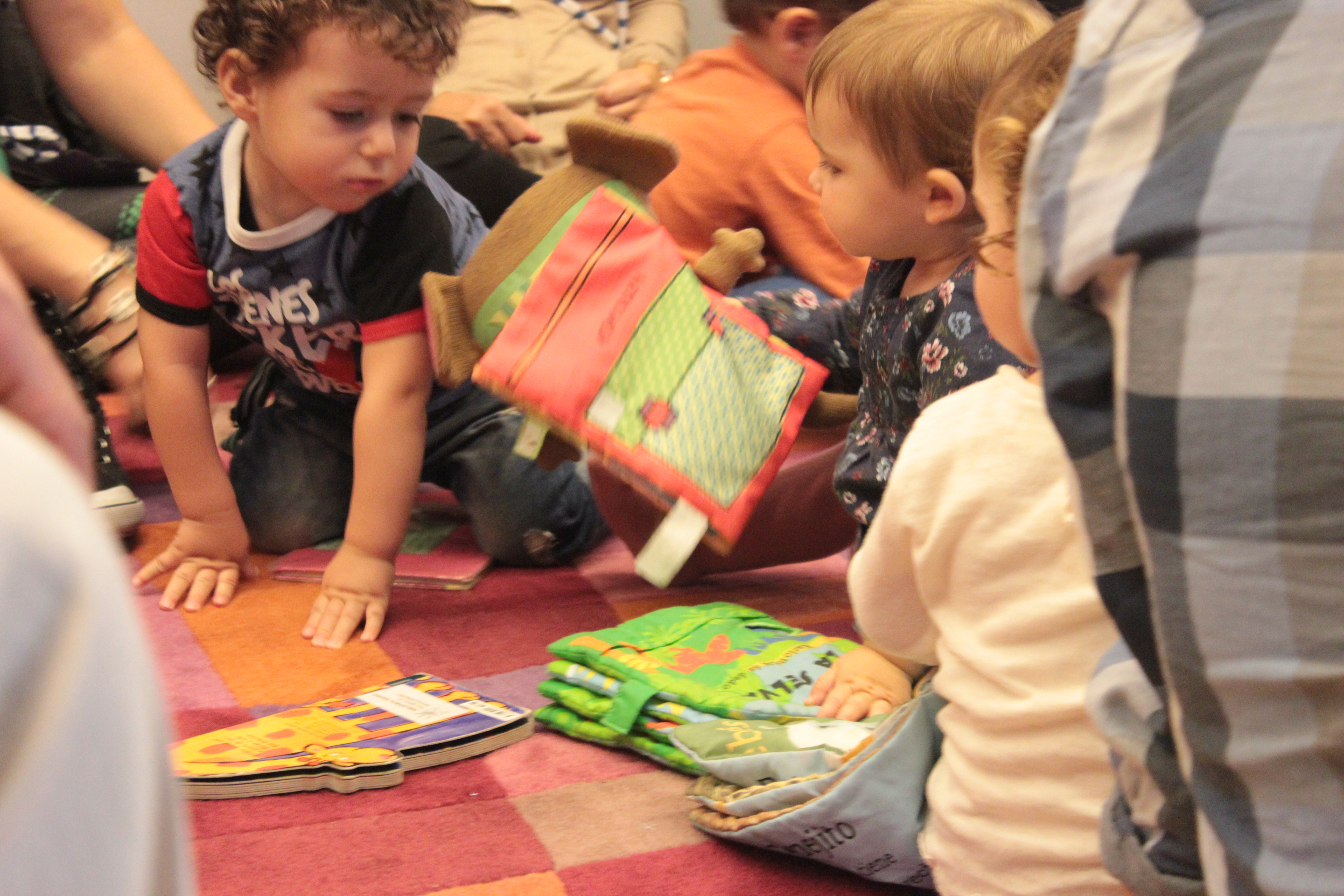 Tras dunha breve actividade para voltar á calma cunha pelota multicolor que nos lembraba as cores que o noso crocodilo coñecía no seu conto, por fin xs máis pequenxs puideron explorar o fondo da bebeteca pola súa conta. E para rematar, e xa que estabamos pequenxs e adultxs reunidxs, aproveitamos para achegar unha pequena batería de recursos cos que contar na casa dun xeito diferente empregando materiais e obxectos de uso diario.