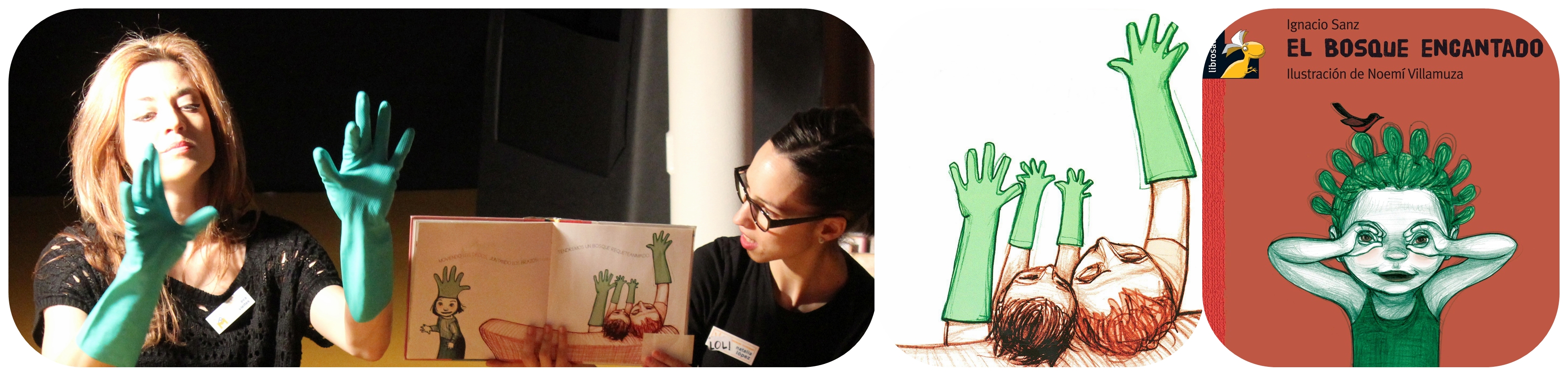 Mais volvendo á sesión do BBencontro, o eixo condutor da mesma foi o libro El bosque encantado, un fermoso álbum escrito por Ignacio Sanz e ilustrado pola protagonista do post, que se convertíu nun xogo para que os bebés descubriran os dedos das súas mans, imaxinaran no que poden chegar a converterse e interactuasen co propio libro ou con quen llelo conta.