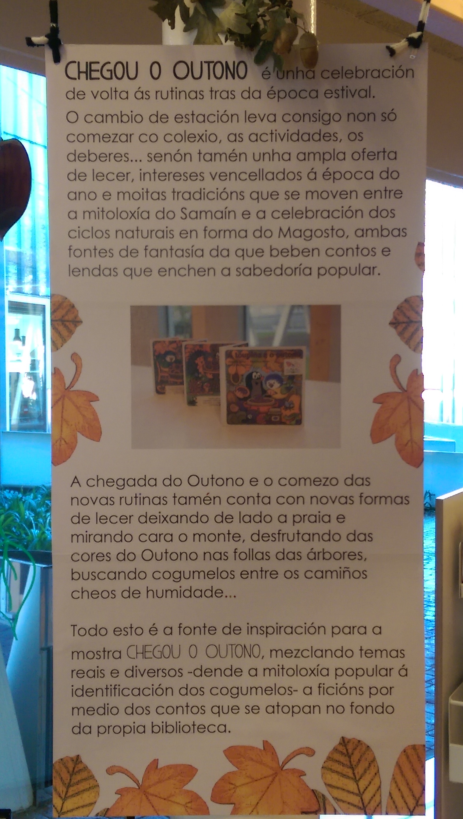 Dende os libros da toupiña Mole para xs bebés da casa, aos de recoñecemento de cogumelos para xs maiores de 5 anos, Chegou o Outono espéravos na Biblioteca de Ágora até Decembro. E lembrade desfrutar das cores outonais!
