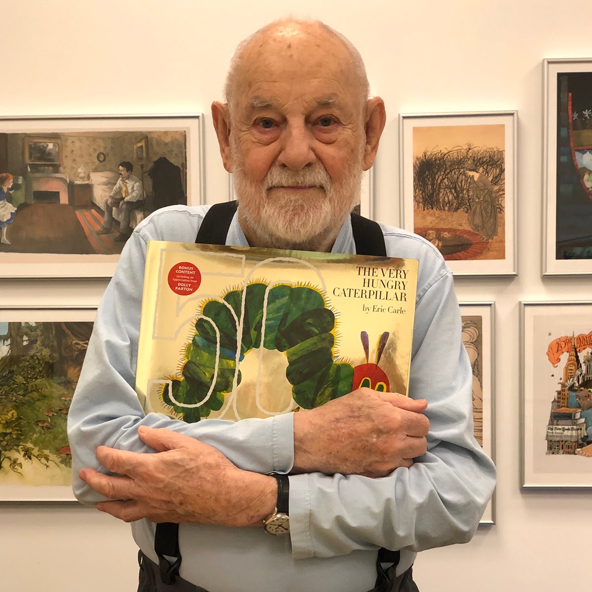 Eric Carle (Siracusa, Nova York, 25 de xuño de 1929) escritor e ilustrador de libros infantís estadounidense e criado en Alemaña. Ilustrou máis de setenta libros, e vendeu 88 milleiros de copias. Este ano celébrase o 50 aniversario da Pequena Eiruga Larpeira convertido en todo un clásico da literatura infantil. O libro amosa como unha diminuta eiruga ,que come sen parar, transfórmase nunha fermosa bolboreta pola maxia da naturaleza.