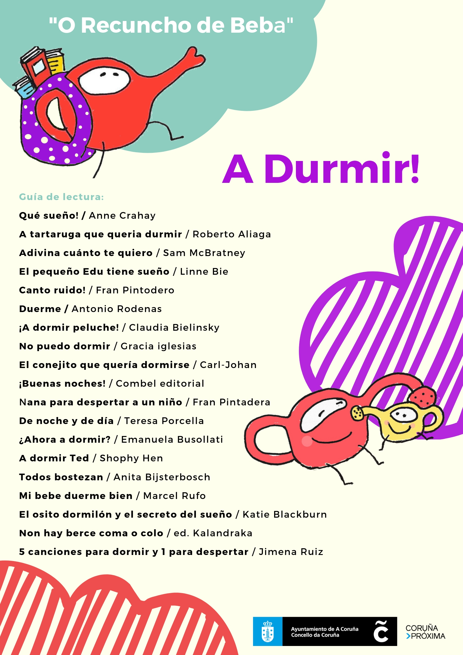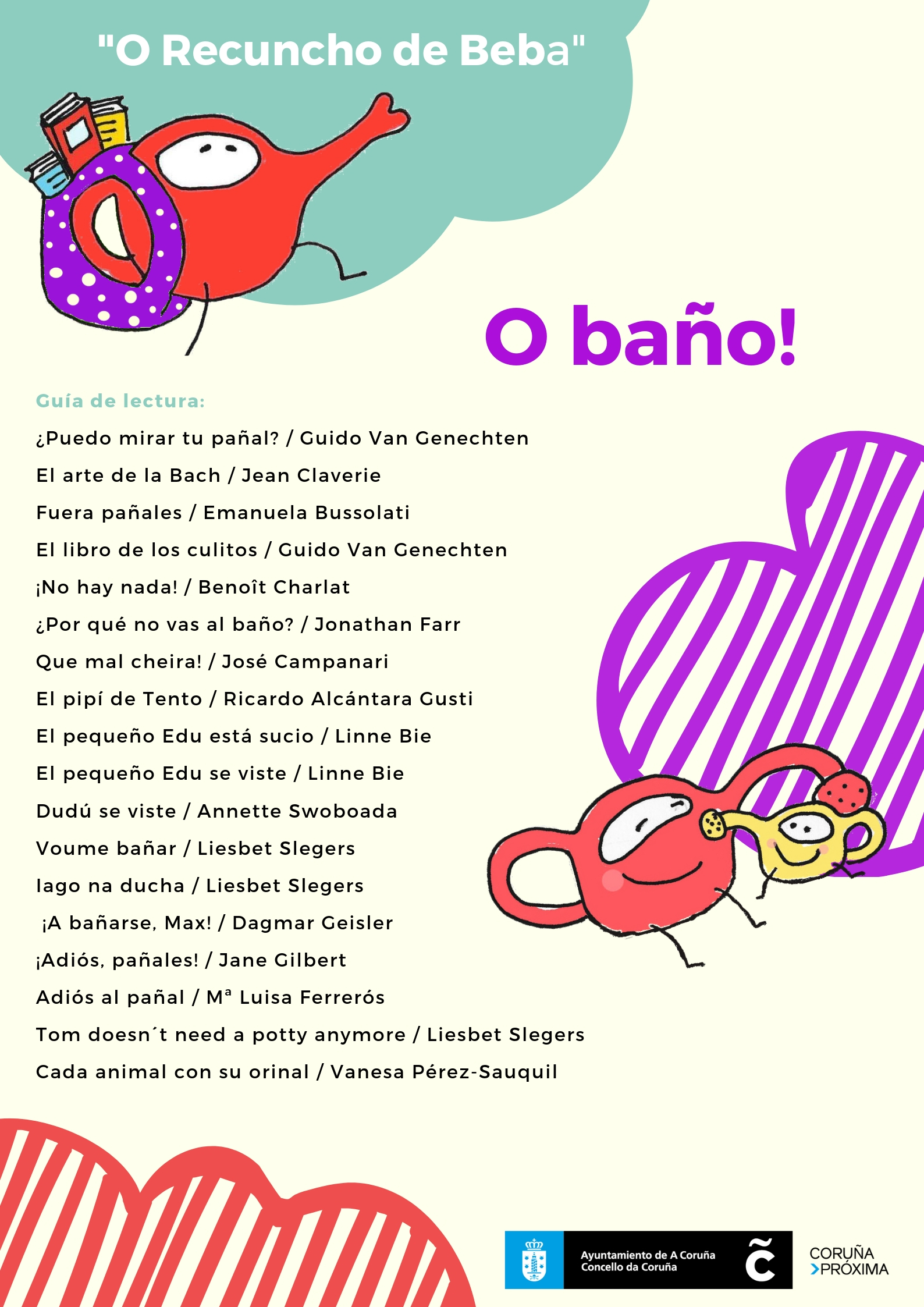Os contos son un recurso moi eficaz para reforzar vínculos afectivos, fomentan a linguaxe, fortalecen a memoria e traballan a intelixencia emocional entre outras. A través deles podemos traballar moitos conceptos e temas de transición como o control de esfínteres, o soño, o comezo do cole… Beba tráenos cada dous meses unha selección de libros para bebes que poderedes atopar no noso recuncho da Bebeteca con algunha temática de interese (O cueiro, o soño, a comida, o xogo…).