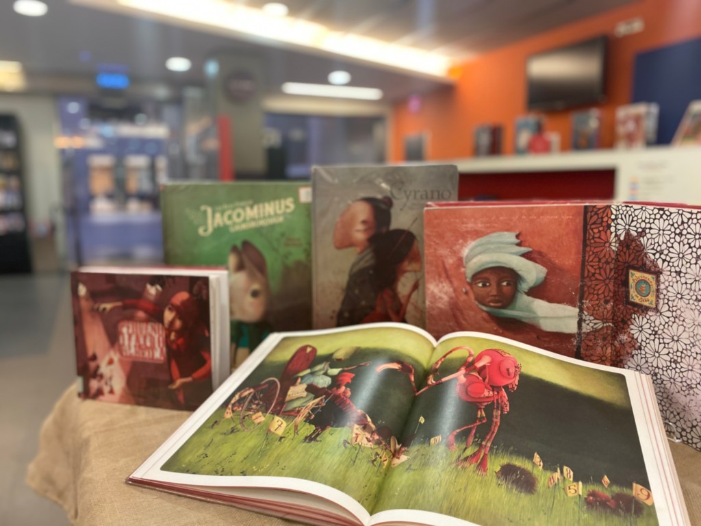 Na biblioteca temos a sorte de contar con numerosas obras do ilustrador Parisino con títulos coma: “Os amantes bolboreta”, “Xenealoxía dunha bruxa”, “Melodía na cidade”, “Cereixa Guinda”, “A nosa señora de París”, “Ondina”, “María Antonieta : diario secreto dunha raíña … entre outros”.