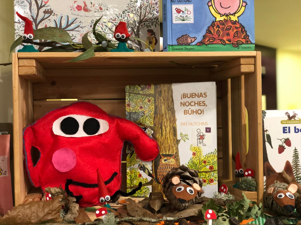 A Beba encántalle o outono, facer magostos e comer moitas castañas, tomar sopa de cabaza, coller o paraugas e pór as galochas para saltar moitas pozas, disfrazarse no Samaín, dar un paseo polo bosque ou polo parque e xogar coas follas que cobren o chan… pero, sen dúbida, o que máis lle gusta, é agardar a que veñades de visita á Biblioteca e xuntos poder desfrutar das historias que encerran os contos.