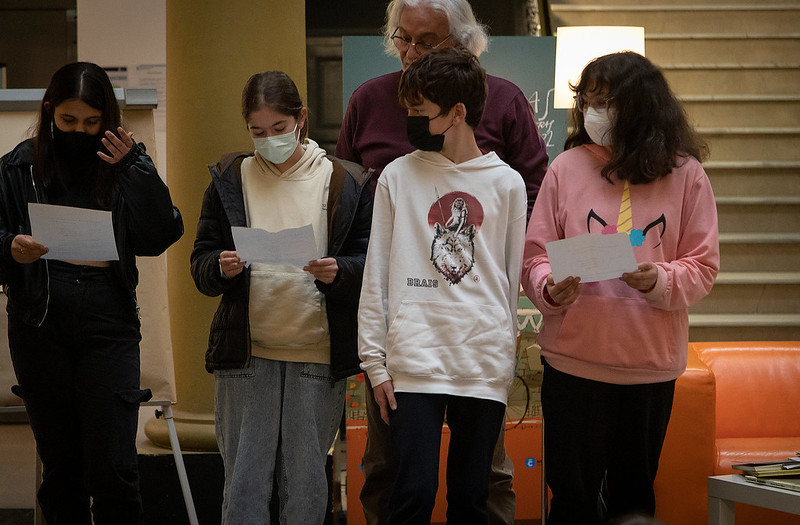 O xoves 31 de marzo para festexar o día do Libro Infantil e Xuvenil, dentro do festival de Primaletras, os clubs de lectura Infantís das Bibliotecas Municipais reuníronse por vez primeira nun encontro co mestre e poeta, gañador do Premio Nacional de Literatura Infantil e Xuvenil Antonio García Teijeiro.